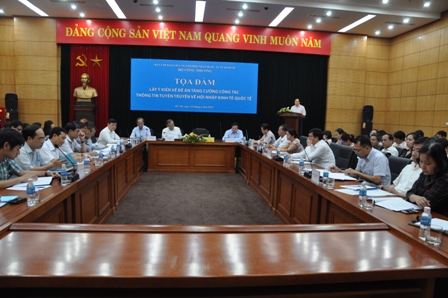 Sáng 10/6, tại Hà Nội, Văn phòng Ban chỉ đạo liên ngành hội nhập Quốc tế về kinh tế (Bộ Công Thương), báo Công Thương, Văn phòng Bộ Công Thương đã phối hợp đã tổ chức chương trình tọa đàm “Lấy ý kiến về đề án tăng cường công tác thông tin tuyên truyền về hội nhập kinh tế Quốc tế”.