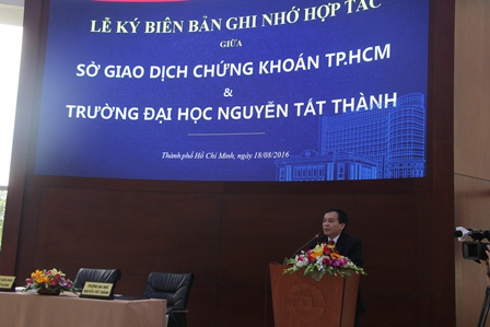 Ngày 18/8/2016, tại Sở GDCK, số 1 Nam Kỳ Khởi Nghĩa, Q. 1, TP. HCM, đã diễn ra lễ kí kết biên bản ghi nhớ hợp tác (MOU) giữa Trường ĐH Nguyễn Tất Thành (ĐH NTT) và Sở GDCK TP. HCM (HOSE). Tham gia lễ kí kết có Đại diện lãnh đạo UBND TP. HCM, lãnh đạo HOSE và Ban giám hiệu Trường ĐH NTT.