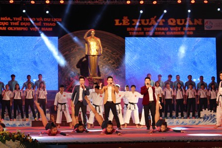 Các VĐV biểu diễn cùng nghệ sỹ trong Lễ xuất quân