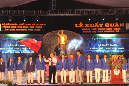 Đã thành một truyền thống tốt đẹp, Lễ xuất quân đoàn thể thao Việt Nam trước mỗi kỳ đại hội thể thao lớn luôn được tổ chức tưng bừng để người dân được cổ vũ, động viên tinh thần các đội tuyển cũng như nêu cao vai trò, trách nhiệm của từng thành viên. Trong Lễ xuất quân, bộ veston màu xanh – đồng phục trình diễn của đoàn TTVN (do Tổng Công ty Đức Giang tài trợ) cũng ra mắt.