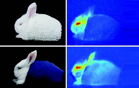 Các nhà khoa học từ đại học Chiết Giang đã phát triển một áo choàng làm cho chú thỏ con gần như vô hình trước camera hồng ngoại nhờ loại xơ bắt chước cấu trúc của lông gấu Bắc cực. Lông gấu Bắc cực có lỗ rỗng, phản chiếu ngược phát xạ hồng ngoài phát ra từ cơ thể. Cấu trúc này giúp ngăn ngừa mất nhiệt và giữ cho gấu được ấm trong môi trường Bắc cực.