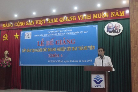 Ngày 05/2/2018, tại Trường Cao đẳng KT-KT Vinatex TP. Hồ Chí Minh, Trung tâm đào tạo cán bộ quản lý doanh nghiệp dệt may đã tổ chức lễ bế giảng và trao giấy chứng nhận tốt nghiệp cho 32 học viên lớp giám đốc xí nghiệp dệt may thành viên - khóa 4 thuộc các đơn vị phía Nam.