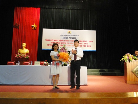 Đc Trần Công Phong - Chủ Tịch Công Đoàn Ngành giáo dục Việt Nam tặng hoa chị Trần Thu Hiền - Giám đốc chi nhánh NBC phía Bắc - cảm ơn sự đồng hành của May Nhà Bè cùng Công Đoàn Ngành trong nhiều năm qua.