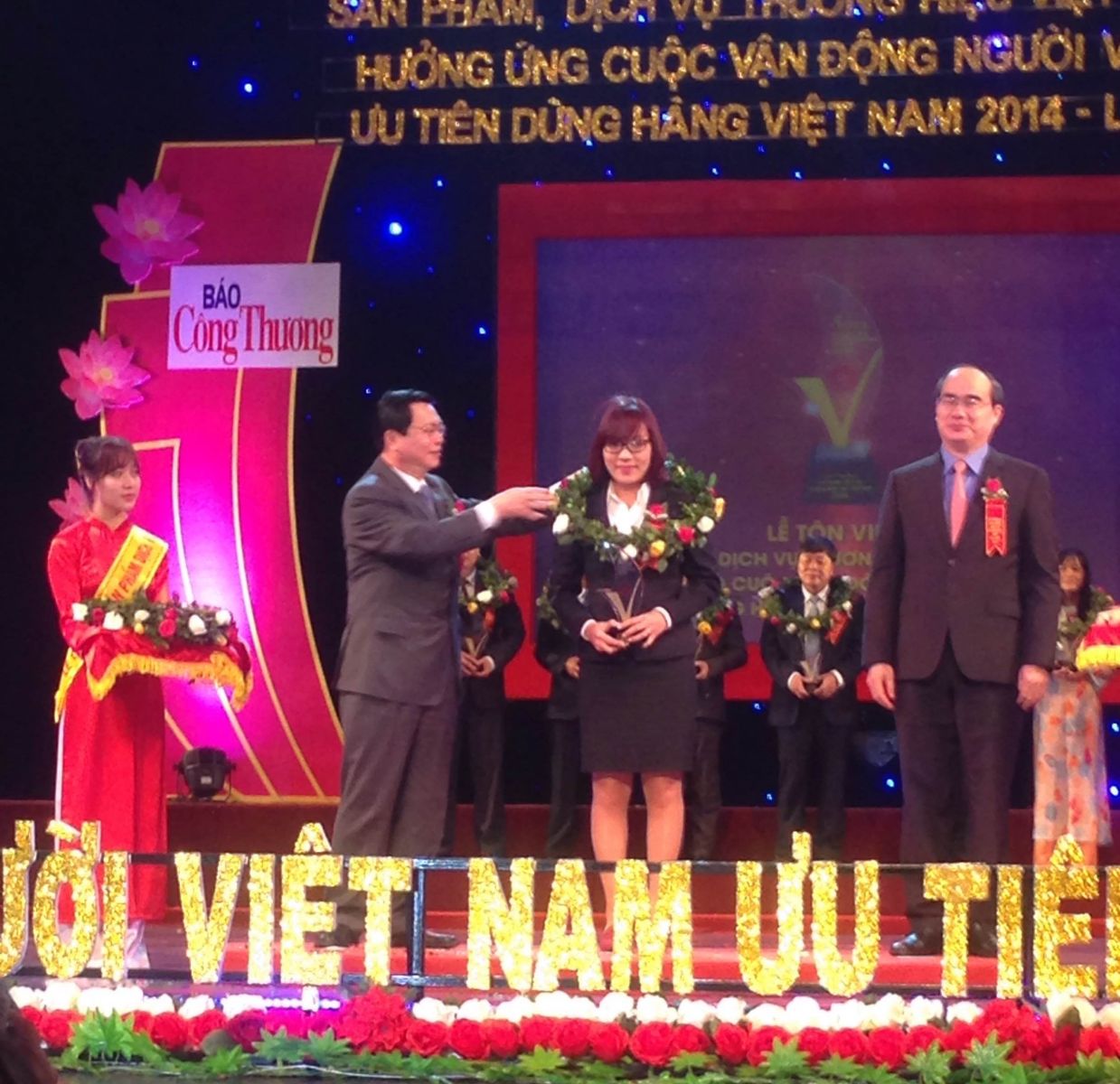 Sáng ngày 15/3, Tổng Công ty Cổ Phần May Nhà Bè – NBC được tôn vinh và nhận Giải thưởng “Sản phẩm, dịch vụ thương hiệu Việt tiêu biểu hưởng ứng Cuộc vận động Người Việt Nam ưu tiên dùng hàng Việt Nam” năm 2014 lần thứ I tại Nhà hát Lớn Hà Nội. Chương trình được truyền hình trực tiếp trên kênh VTV1 – Đài Truyền hình Việt Nam.
