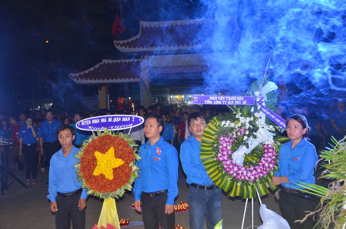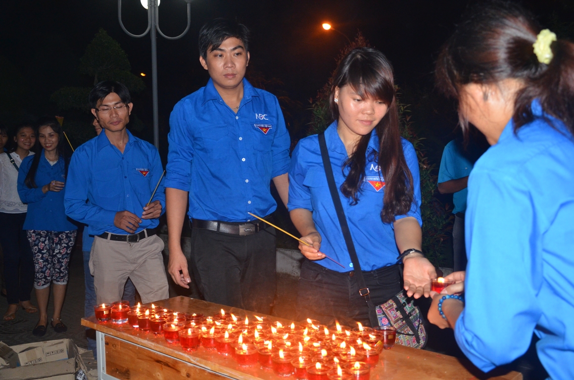 Sau phần lễ, các đại biểu cùng đoàn thanh niên NBC đã lần lượt dâng hương, hoa, thắp nến tri ân các anh hùng liệt sĩ tại đài tưởng niệm chính và ở các phần mộ. Trong đêm tối, bản hùng ca vang lên, ánh sáng tỏa ra từ những nén hương, ngọn nến bỗng rực rỡ, lung linh lạ kỳ, chứng giám cho tấm lòng tri ân của thế hệ trẻ hôm nay...