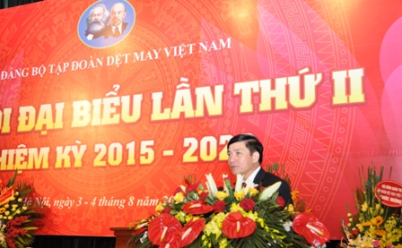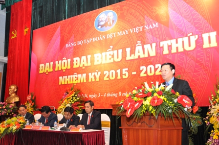 Đại hội đại biểu Đảng bộ Tập đoàn Dệt May Việt Nam lần thứ II, nhiệm kỳ 2015-2020 đã chính thức diễn ra tại Hà Nội ngày mồng 3/8/2015 trong không khí cả nước hướng tới kỷ niệm 70 năm, cách mạng tháng Tám thành công và Quốc khánh mồng 2-9; Đại hội Đảng các cấp tiến tới Đại hội Đảng toàn quốc lần thứ XII. Với tinh thần “Đoàn kết - Trách nhiệm - Chủ động - Sáng tạo - Đổi mới - Hiệu quả”, Sự kiện chính trị này mang ý nghĩa quan trọng, định hướng cho Đảng bộ Tập đoàn tiếp tục xây dựng Đảng bộ trong sạch vững mạnh; Đổi mới toàn diện, quản trị chặt chẽ, tăng tốc đầu tư, phát triển thị trường, tăng cường nhân lực nhằm nâng cao hiệu quả sản xuất kinh doanh, nâng cao năng lực cạnh tranh và hội nhập kinh tế quốc tế; Xây dựng Tập đoàn Dệt May Việt Nam phát triển nhanh, mạnh, bền vững để hội nhập sâu vào nền kinh tế thế giới.