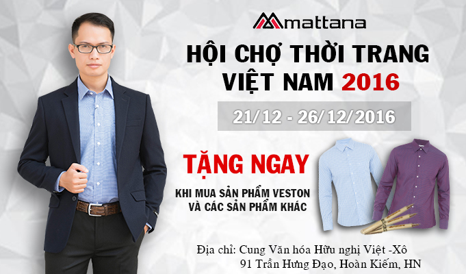 Tại Hội chợ Thời trang Việt Nam VIFF 2016 (Cung Hữu Nghị, 91 Trần Hưng Đạo, Hà Nội) diễn ra từ 21- 26.12.2016, khi khách hàng tham quan và mua sắm tại gian hàng của Mattana, thương hiệu thời trang nam của Tổng Công ty May Nhà Bè sẽ được tham gia một chương trình thú vị.