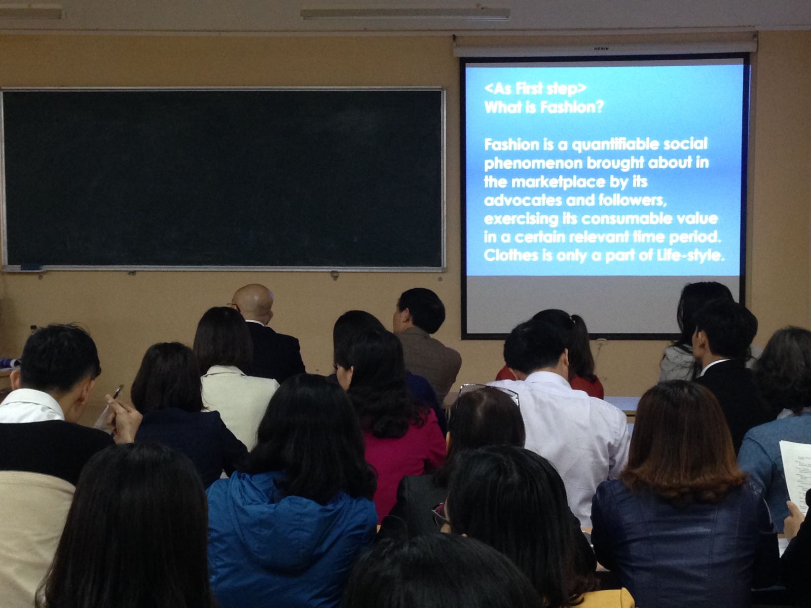 Giảng viên chính của khóa đào tạo là Giáo sư Tadao TAKEUCHI, Đại học Thời trang Bunka, Khoa Sáng tạo Thời trang. Khóa học diễn ra trong 4 ngày từ 21/2 - 24/2/2017 với các nội dung chính: Tổng quan về xu hướng thời trang, xu hướng ngành dệt, phân tích thị trường dệt may, định vị thương hiệu thị trường, đặc biệt là các kiến thức cơ bản về dệt. Giảng viên, Giáo sư Tadao TAKEUCHI cho rằng đào tạo kiến thức cơ sở là rất quan trọng. Trên cơ sở kiến thức nền tảng, các công ty Việt Nam sẽ có khả năng đánh giá xu hướng thời trang đa chiều, bao gồm cả nhu hướng màu sắc và xu hướng dệt. Sau khi đạt được các kỹ năng này, các công ty Việt Nam sẽ tự nâng cao năng lực hướng đến sản xuất từ OEM lên ODM/OBM.