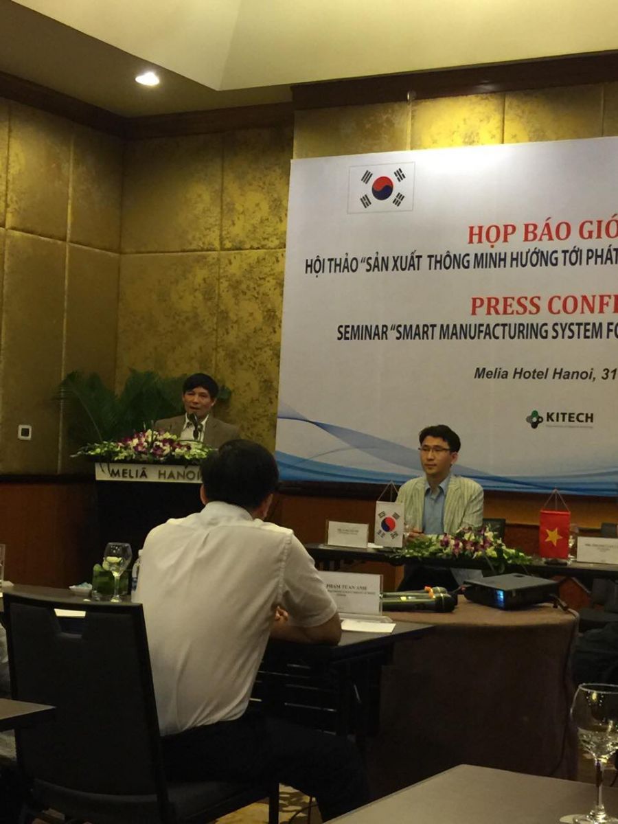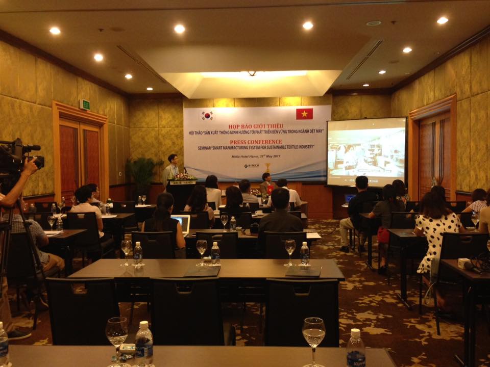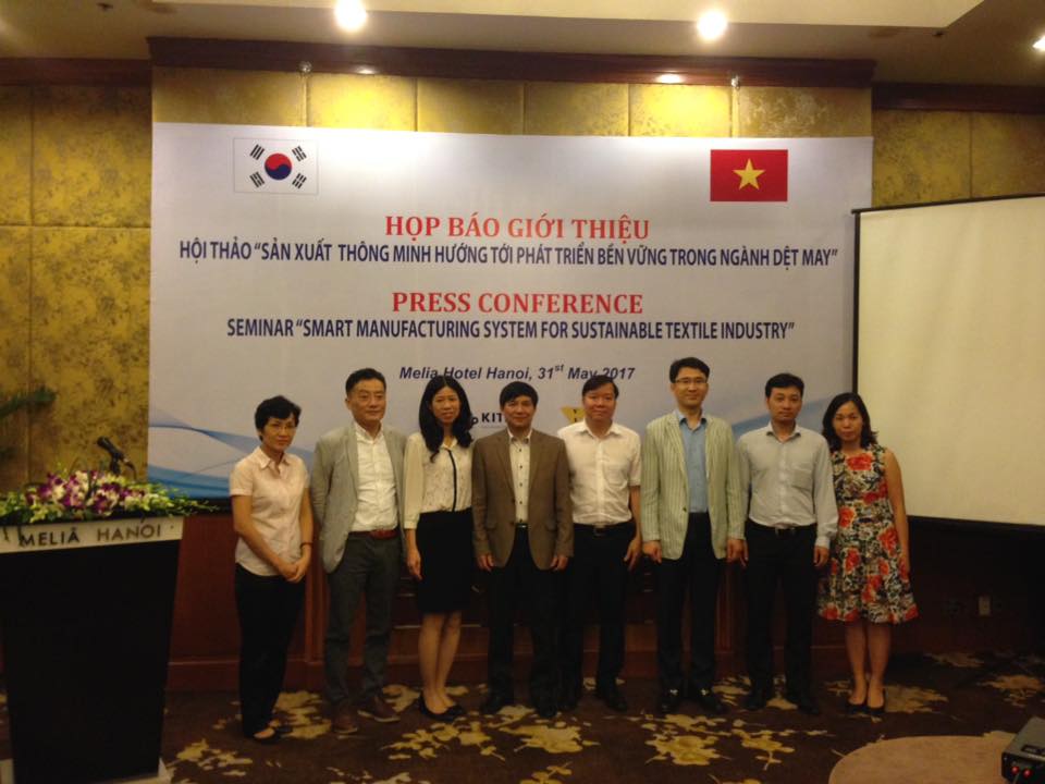 Tham dự buổi họp báo giới thiệu hội thảo sáng nay tại khách sạn Melia Hà Nội có sự tham gia của ông Phạm Tuấn Anh - Phó Vụ trưởng Vụ Công nghiệp nặng, bà Trương Thị Thu Hà - Phó Vụ trưởng Vụ công nghiệp nhẹ, ông Trương Văn Cẩm - Phó Chủ tịch Hiệp hội Dệt May Việt Nam, Ông Park Jun Ho- Nghiên cứu cao cấp- nguyên Trưởng VP Đại diện KITECH Việt Nam, Tiến sỹ Cha Hee Cheol- Nghiên cứu trưởng Viện KITECH và các chuyên viên của các Bộ, Tập đoàn Dệt May Việt Nam, Trường đại học, cao đẳng và các cơ quan báo chí.